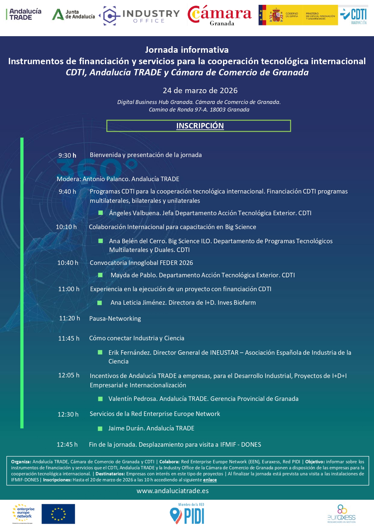 Invesbiofarm will participate as a speaker at the Information Workshop on Funding Instruments and Services for International Technological Cooperation, organized by CDTI, Andalucía TRADE and the Granada Chamber of Commerce.